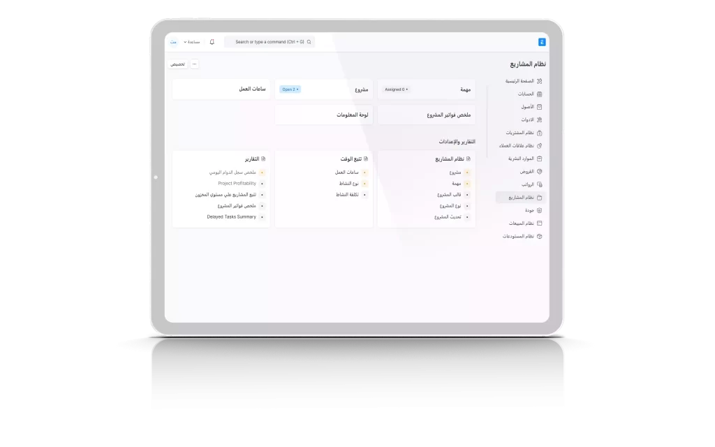 توفر وحدة ادارة المشاريع على النظام ادوات متنوعة لادارة المشاريع المختلفة من ناحية التكلفة ومن ناحية الجدول الزمني لانهاء المشروع. كما يمتلك النظام مخطط حانت والمخصص لادارة المهام في كل مشروع ويمكنك من القاء نظرة ثاقبة على كل مشروع بشكل سهل واحترافي من خلال الادوات